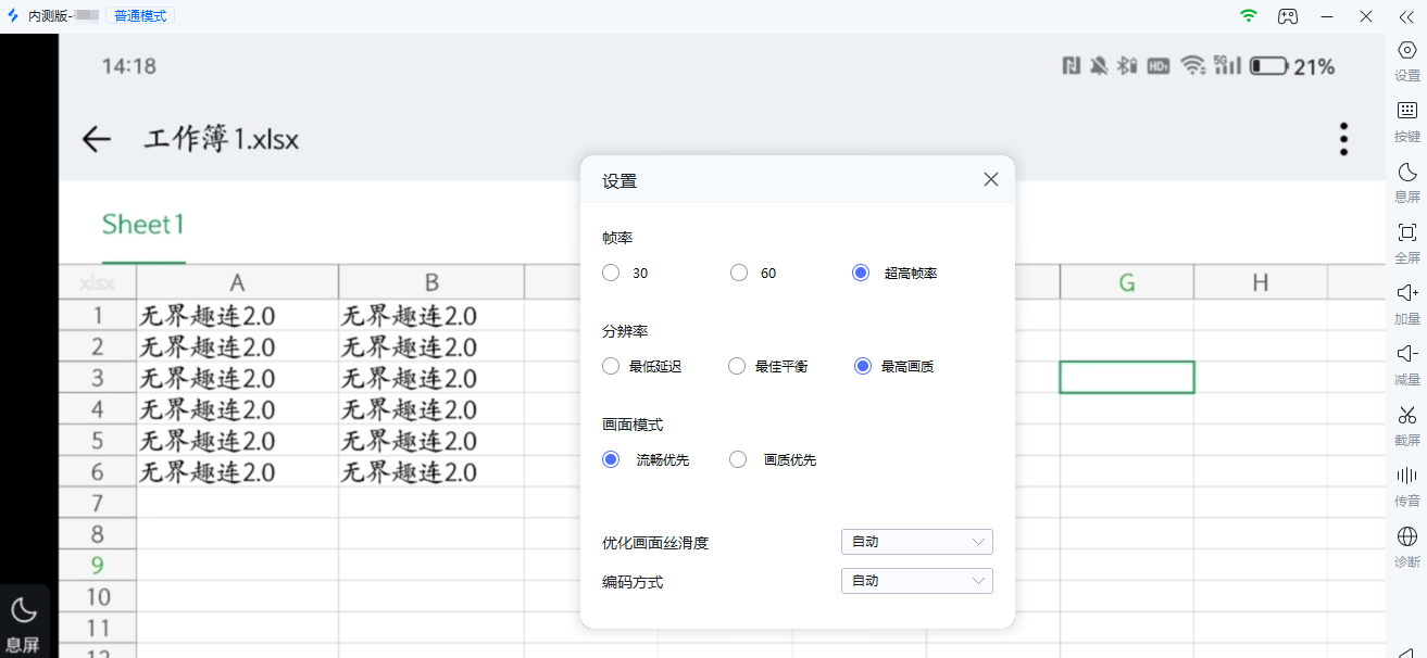 无界趣连2.0采用自研智能传输协议,平均延迟稳定在毫秒级,控制端的每一次点击、滑动、长按操作,被控手机都能即时响应,没有半点隔空操控的割裂感。实际测试中,用它远程修改另一台手机上的数据表格,填入速度和操控本地手机几乎无差别。