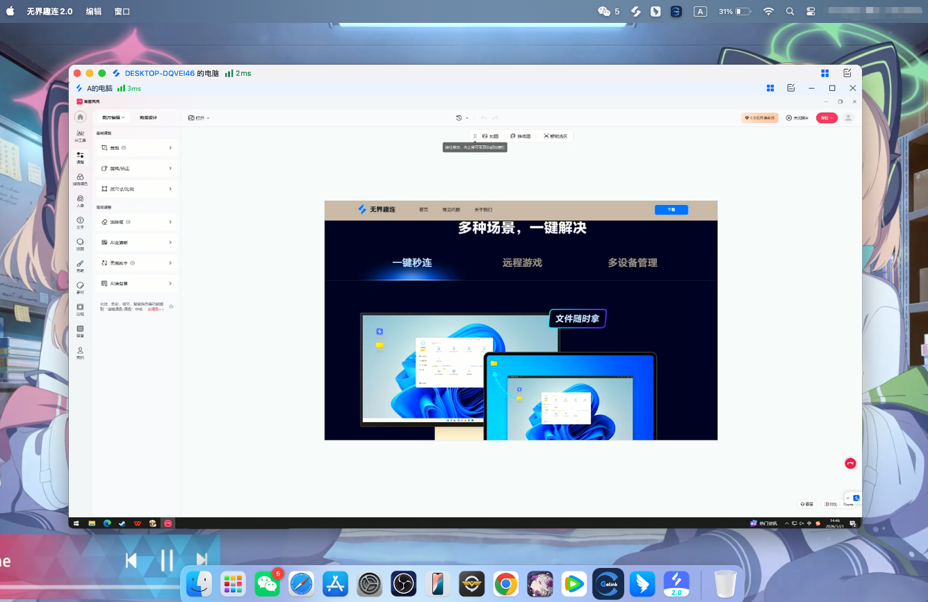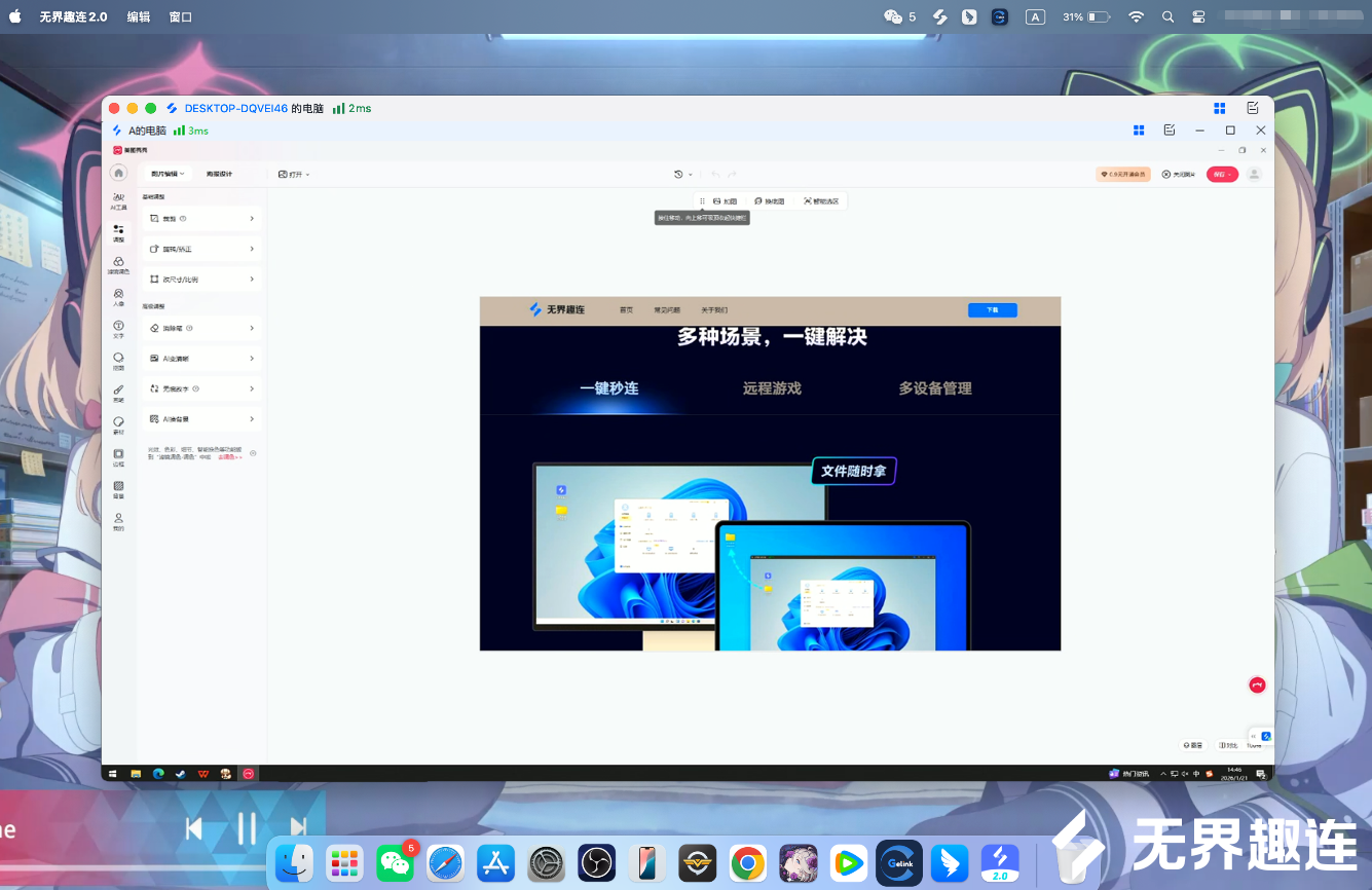 远程屏幕共享,画质和帧率直接决定体验。无界趣连2.0支持最高4K分辨率+120帧高刷新率,画面没有丝毫压缩损耗,文字边缘锐利清晰,色彩还原精准自然,就算是设计稿的细微线条、视频的帧级细节,都能完整呈现。不管是设计师远程对接方案、剪辑师同步修改视频,还是游戏玩家实时分享操作,都能拥有清晰流畅的共享体验。