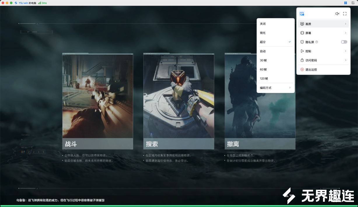 玩三角洲这类射击游戏,延迟是致命问题,无界趣连2.0搭载自研传输协议,把延迟稳稳控制在毫秒级。不管是快速开镜瞄准、紧急侧身闪避,还是精准释放战术技能,指令都能即时反馈,没有丝毫滞后感,完全贴合mac玩三角洲的实时操作需求,让远程操控和本地游玩几乎没有区别。