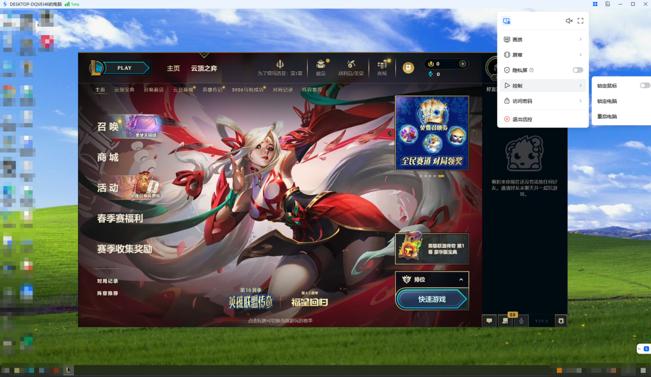 远程玩游戏时,鼠标不会意外滑出游戏窗口,避免点击桌面导致操作中断。这个细节对于需要频繁拖拽视角、精准点击技能栏的玩家来说非常实用,体验和本地玩几乎没差别。